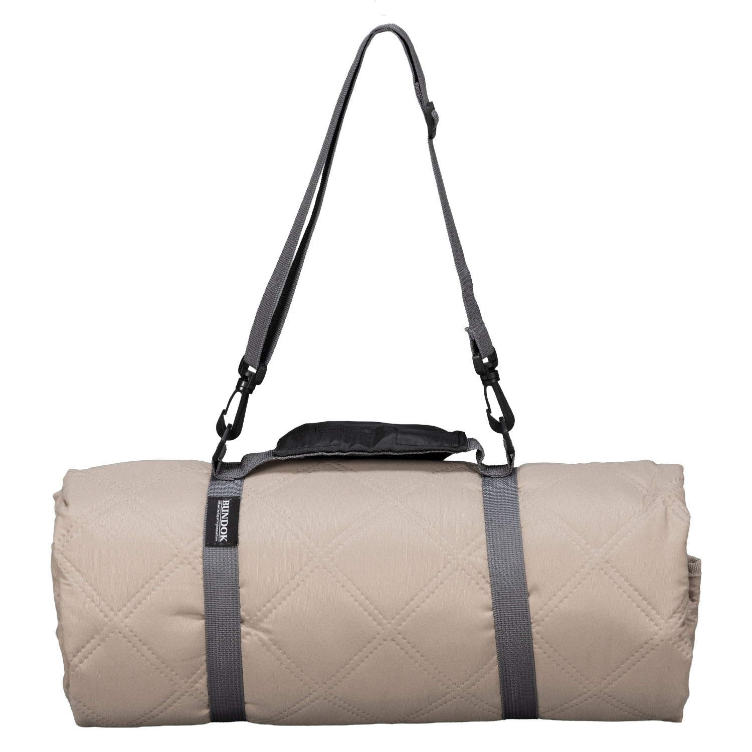 ペグ固定でしっかりフチが立つ。雨のなどで地面から水が入りにくい。表面撥水加工で撥水性抜群。レジャー、公園などで休息、スポーツ観戦、花火観戦など。丸めて収納でき、収納ベルトは肩掛け紐付きで、コンパクトで持ち運びらくらく。