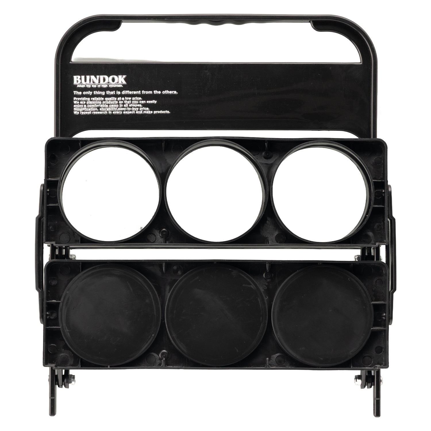 バーベキューのドリンクホルダーに。使わないときは平らにたたんで収納できます。レジャーやスタジアムスポーツ観戦に!