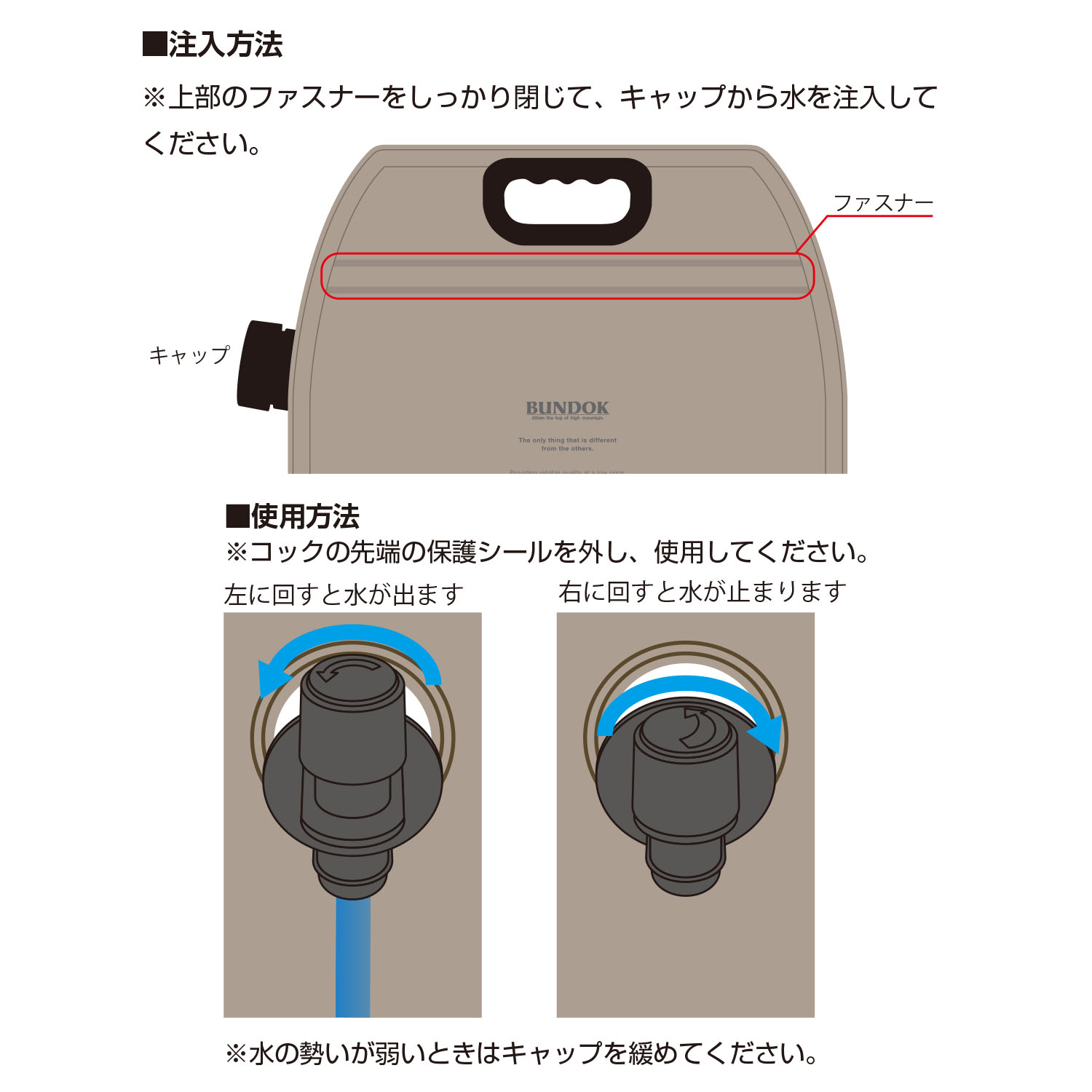 キャンプなどの水の確保、いざという時の、防災用に。使用後は軽量コンパクト。蛇口を改良版となり、コックを回すだけで水がでるので、従来よりも両手が使えるので便利です。天面開閉ができ、丸洗いできる新タイプ。